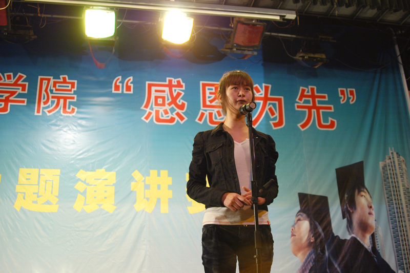 图为外语系的龙云同学在动情地演讲《感恩,那些微瞬间》