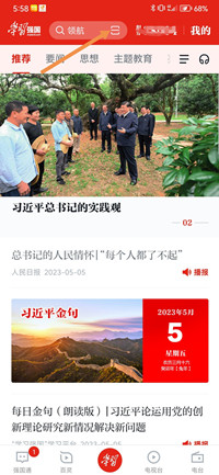 点击APP首页“主题教育”栏目,开始习近平新时代中国特色社会主义思想主题教育的学习,子栏目有:“重要论述”、“中央精神”、“教育动态”、“理论学习”、“调查研究”、“学习资料”等等。