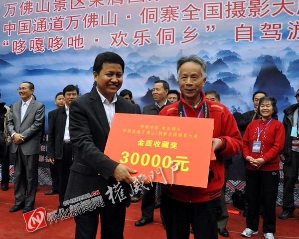 本次大展设金质收藏奖1名,银质收藏奖2名,铜质收藏奖5名,入围奖100名。来自邵阳学院74岁的退休教师唐洄澜以一幅全面反映万佛山佳景的《群峰闹海》艺压群雄,夺取本次大展金质收藏奖。在这次影展中,邵阳影人共有十二人十六幅作品获奖。年已古稀的唐洄澜老教授(泉古)老当益壮,三上名胜万佛山览胜。功夫不负有心人,在一个雨后初晴的清晨五时许拍摄到了《群峰闹海》的壮观而靓丽的景观,一举夺冠。中国摄影家协会会员、邵阳市摄影家协会主席刘幼民(文垛)独具慧眼,在前往通道参加坪坦芦笙艺术节途中,路遇一迎亲队伍浩浩荡荡、热热闹闹,一派喜气洋洋的场景,便当机立断、立马停车、举机捕捉《侗乡喜事》喜摘铜牌。绥宁县人事局老局长易建明——网友一剑鸣,不鸣则已,一鸣惊人,一举喜获三优。邵阳市人民政府办老主任罗少炎——湖南站快乐聚焦俱乐部版主山里人名副其实,倚山摄山,用辛勤的汗水浇铸了两幅佳作名列榜中。武冈市摄影家协会理事曾晓红——网友雁南飞两飞通道,用镜头描素《芋头寨画意》如意获奖。